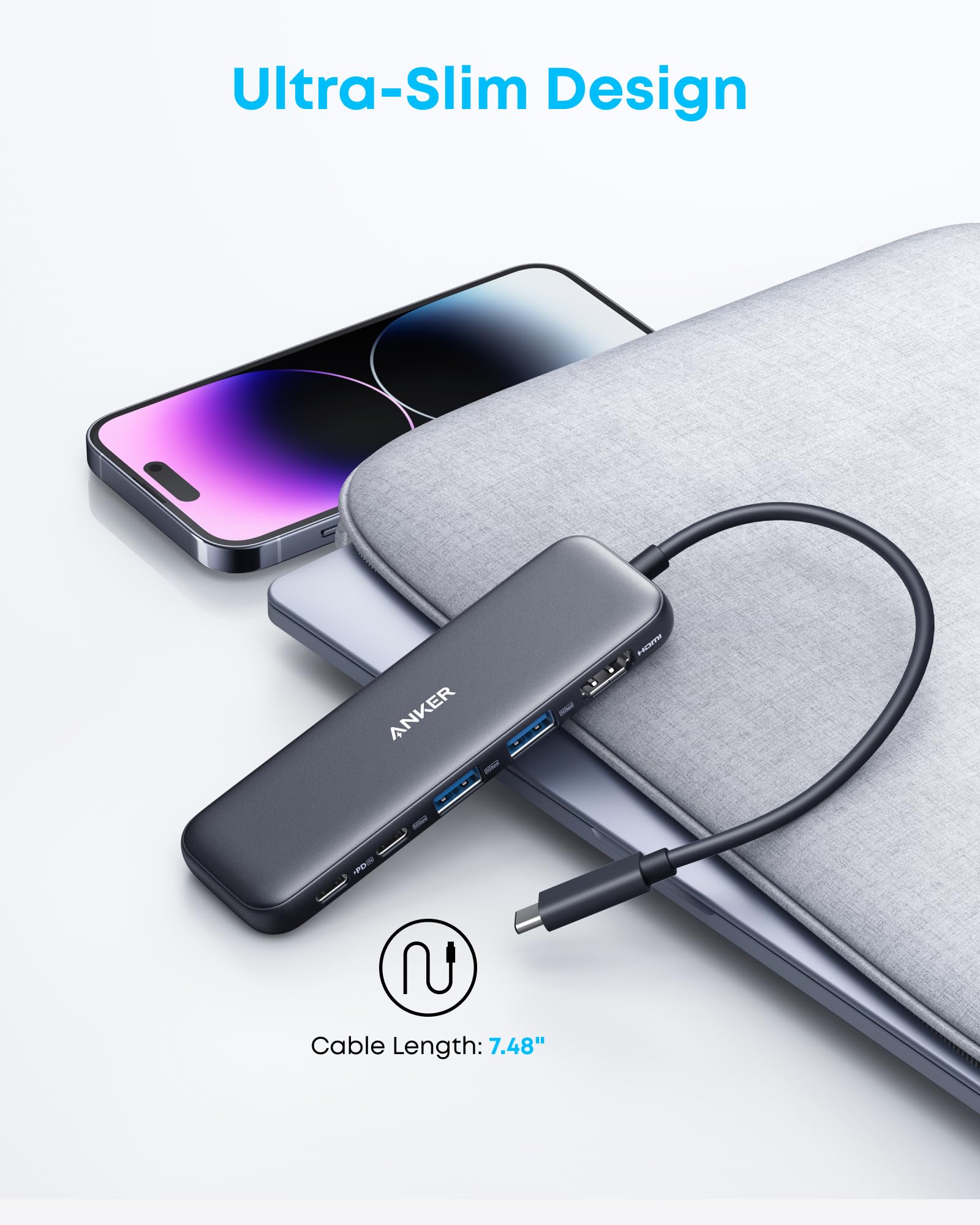 - 5-in-1 Connectivity: Equipped with a 4K HDMI port, a 5 Gbps USB-C data port, two 5 Gbps USB-A ports, and a USB C 100W PD-IN port. Note: The USB C 100W PD-IN port supports only charging and does not support data transfer devices such as headphones or speakers.
