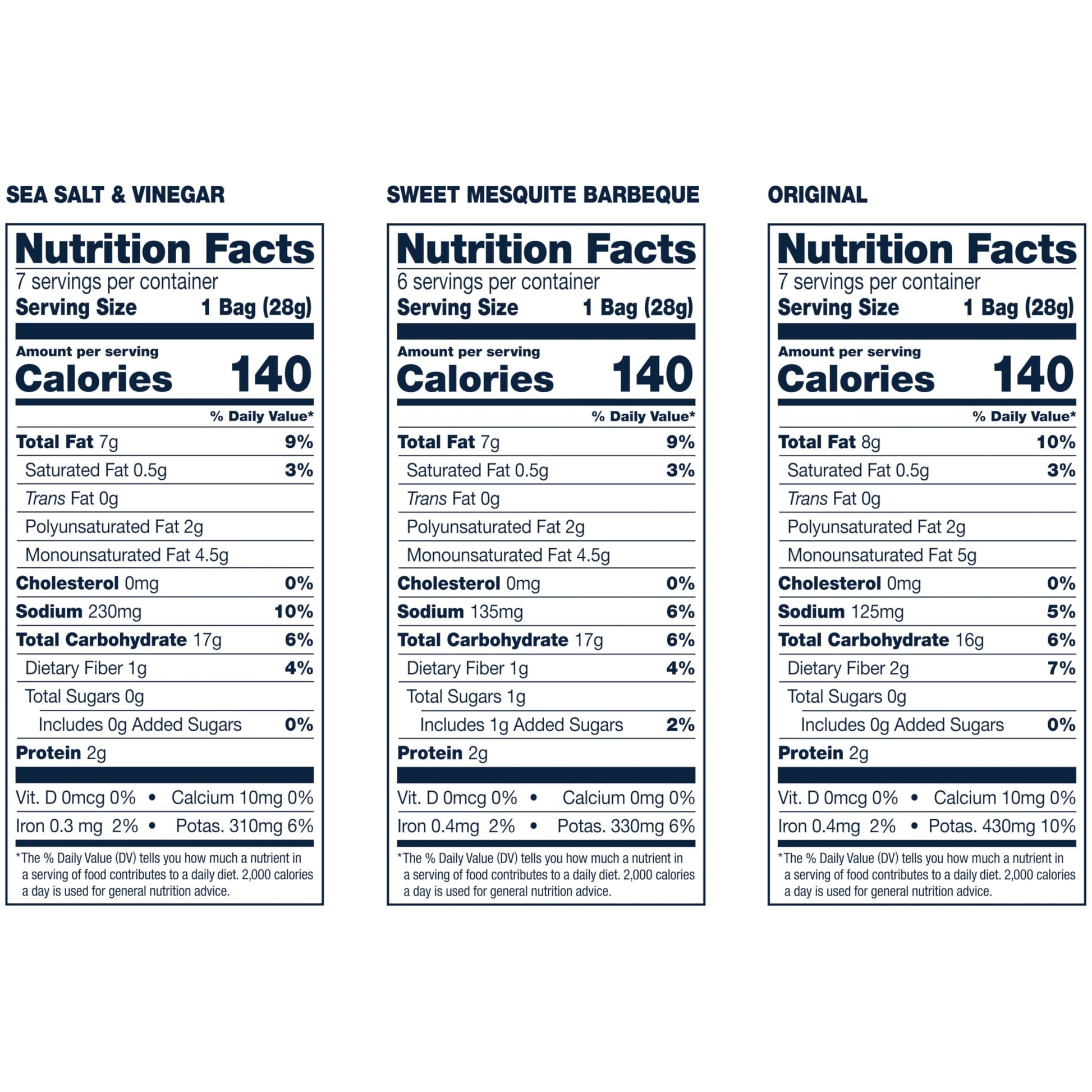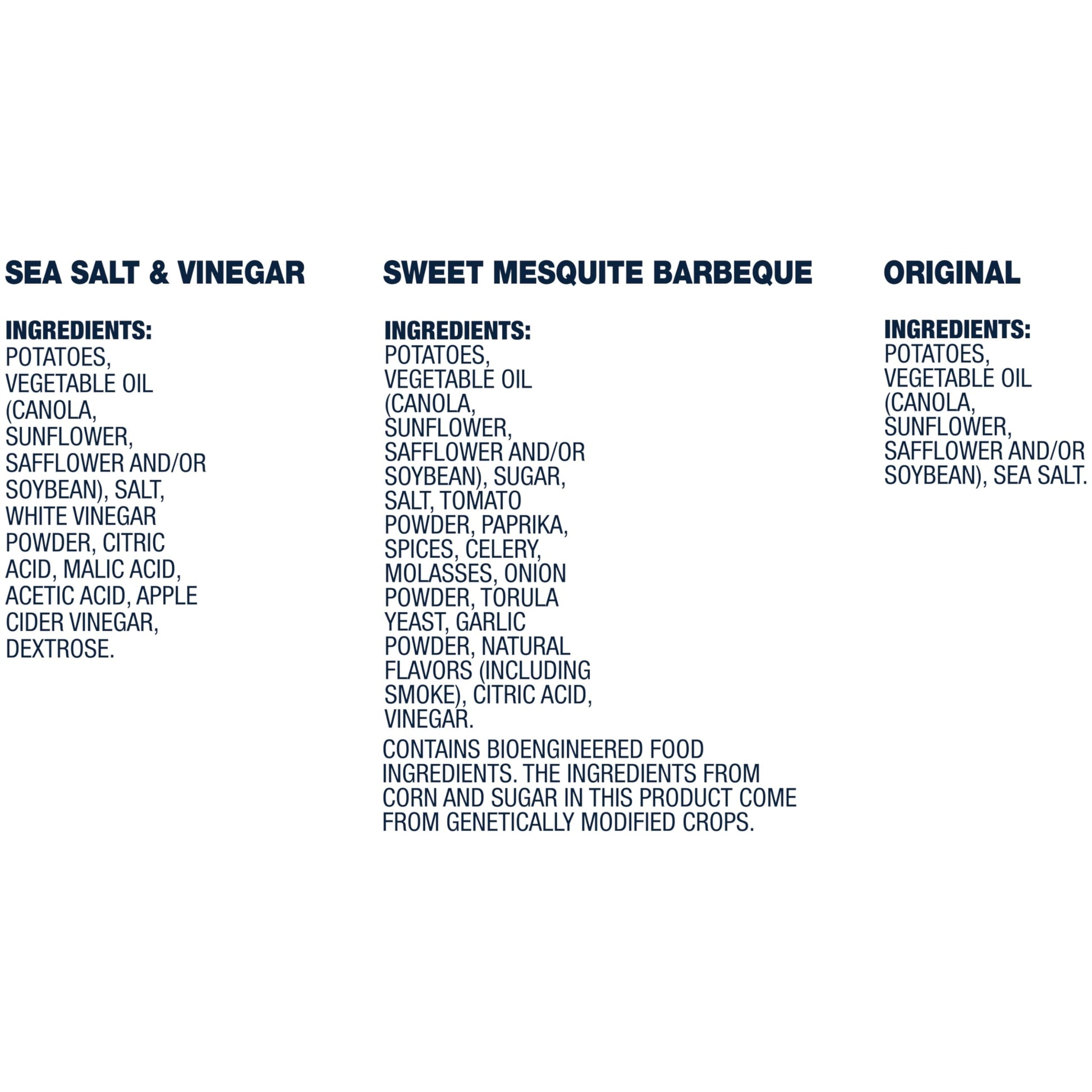 - Includes 7 bags of sea salt & vinegar, 7 bags of original and 6 bags of sweet mesquite barbeque chips