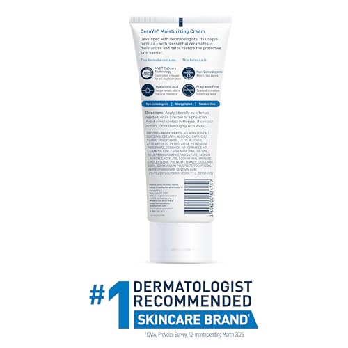 Details: Developed with dermatologists, CeraVe Moisturizing Cream has a unique formula that provides 24-hour hydration and helps restore the protective skin barrier with three essential ceramides (1,3,6-II) and hyaluronic acid. This rich, non-greasy, fast-absorbing formula is ideal for sensitive skin on both the face and body Featuring our patented MVE Technology to release a steady stream of moisturizing ingredients throughout the day and night.