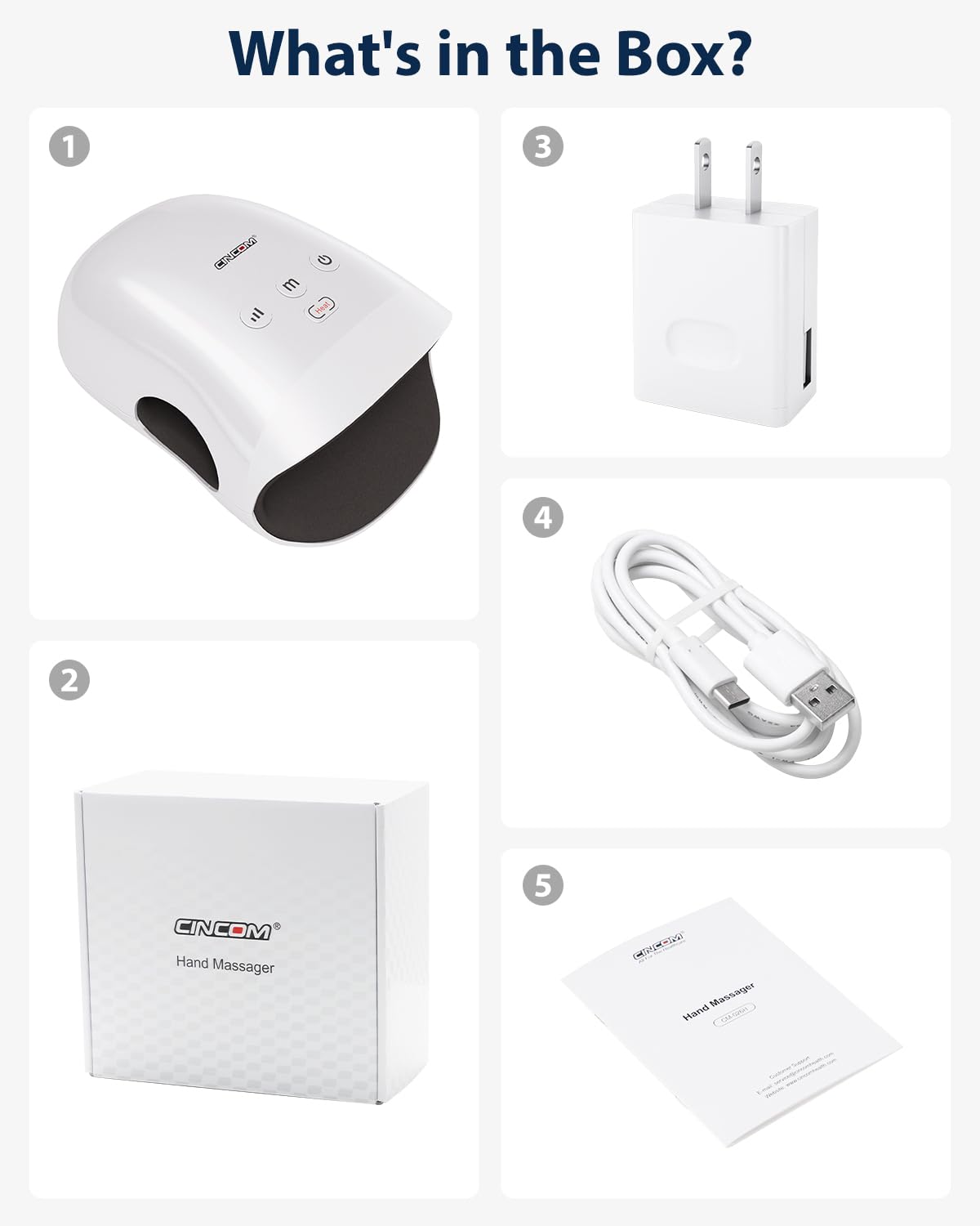 - All-Around Hand Massage Therapy: CINCOM hand massager delivers deep kneading with 4 massage heads and rhythmic air compression. Targets acupuncture points across fingers, palms, and wrists for full-hand relaxation and circulation support.