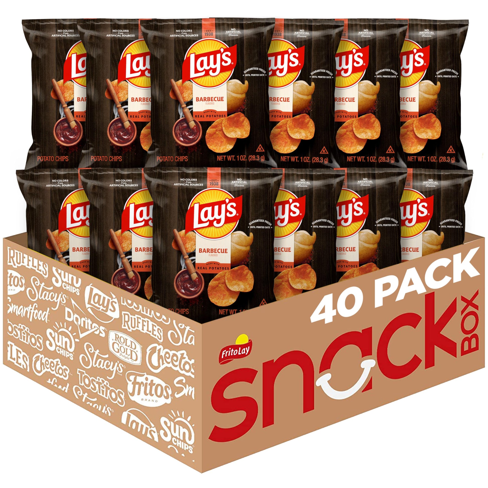 - Includes 40 (1 oz) bags of Lay's Potato Chips, Barbecue flavor